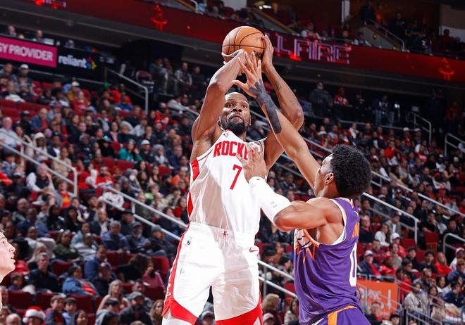 杜兰特拿下28分4篮板8助攻3抢断1盖帽,带领火箭以117-98战胜太阳。休斯敦火箭队战绩为15胜5负,排名西部第二。这一天,杜兰特得到了双重祝福。他的职业生涯总得分突破了31,000分大关。面对老东家太阳队,杜兰特毫不留情。他17投11中,三分球2投全中,罚球4罚全中,打出了高效的进攻。杜兰特似乎正在用自己出色的表现来证明自己在火箭队比在太阳队更出色。本场比赛之前,杜兰特的职业生涯总得分已经达到了30996分。第一节杜兰特的手感确实不太好。他5投1中,罚球得到2分。首节他就拿下4分,得分达到31000分大关。然而,在实现这一里程碑后,杜兰特被释放。第二节上场后不久,他得到谢泼德助攻命中三分,随后突破扣篮得分。杜兰特标志性的中投开始展现。他连续3次中投得分,其中两次是2+1。杜兰特是火箭队的晴雨表。第一节他感觉很糟糕。首节火箭以24比31领先太阳7分。第二节,杜兰特疯狂得分。连得13分后,火箭46-44反超太阳。杜兰特的进攻风暴还远未结束。他突破上篮得分,分别助攻亚当斯和阿门汤普森得分。紧接着,他再次跳投得分,并在节末帮助奥科吉扣篮。杜兰特第二节拿下17分并送出3次助攻。在杜兰特的带领下,第二节火箭队以44-27领先,领先10分。杜兰特在第三节保持了出色的状态。他没有继续得分,但他打出了攻防结合的表现e 性能。杜兰特本节得到7分,贡献3助攻3抢断1盖帽。火箭这一节只让太阳得到14分,球队将领先优势扩大到25分,使得比赛没有暂停。杜兰特第四节没有出战,早早就享受到了计时待遇。赛后,杜兰特被问及达到31000分里程碑的感觉如何。杜兰特说道:“很多人让我起鸡皮疙瘩。我非常感激。我会继续前进。”与此同时,杜兰特颇为感慨:“这意味着很多,我这个年纪还能在联盟打球,为球队做出贡献,我充满了感激之情。”杜兰特今年37岁了。很多球员在这个年龄就离开联盟,或者成为替补球员或者边缘球员。杜兰特仍然是一支球队的核心,他为一支有夺冠潜力的球队效力。火箭队主教练乌多卡曾在球员时期与杜兰特竞争,如今他已经在NBA执教了很多年了。 “这真的太不可思议了,我在新秀赛季和之后的几次比赛中都和他交手过。我记得他刚进联盟的时候,对手现在还是用同样的方式来防守他——给他身体接触,强迫他做球,但他学会了调整,看到了所有的防守,能够在这个年龄和很长一段时间内保持高效率和高水平。”乌杜卡说。职业生涯31000分大关只是杜兰特辉煌职业生涯中一个不可思议的节点。他仍然保持着出色的状态,仍然是联盟的前锋。他一定会创造很多奇迹。杜兰特现在是 NBA 历史上第八位至少得分的球员。他用了1,141场比赛才得到31,000分,这在历史上并列第三快。张伯伦花了 1,015 场比赛才达到这一里程碑。 “我们在更衣室里祝贺他,但他会超越很多人,拿下数千分。”火箭主帅乌多卡说道。乌多卡当然期待斯杜兰特能够得到还有几千分。毕竟,火箭队需要杜兰特保持状态,带领球队向总冠军发起冲击。此战过后,杜兰特场均贡献25.2分5.0篮板3.9助攻1.1抢断0.7盖帽,投篮命中率50%,罚球命中率88.6%,在火箭队,杜兰特带领一支充满天赋的球队夺得了总冠军。