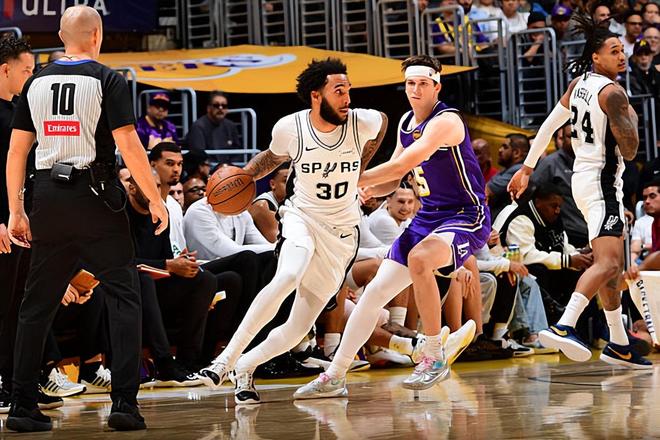 在此前进行的NBA杯西部半决赛中,圣安东尼奥马刺队主场132-119击败洛杉矶湖人队。本场比赛结束后,马刺队成功晋级NBA杯西部决赛,将与俄克拉荷马城雷霆队争夺NBA杯决赛席位,而湖人队则惨遭淘汰。本场比赛过后,取得两连胜的马刺队将战绩提升至17胜7负,继续排名西部第五。近三场比赛输掉两场的湖人队战绩也跌至17胜7负,排名跌至西部第四。本场比赛,热刺替补前锋朱利安·商帕尼依然保持着扎实的表现。钱帕尼出战28分44秒,投篮8中6,三分线外4中2,罚球2中2。他得到16分、7个篮板、2次助攻、1次抢断、1次盖帽。他还有1次失误和4次犯规,正负值为+6。尚帕尼仍可在进攻端有着稳定的输出。他可以在对手的内线制造威胁。在投篮之外他也保持了足够的稳定性。他在进攻端也发挥了重要作用。不仅如此,尚帕尼在防守端的表现也可圈可点。他仍然是一名可靠的防守者,他在防守端的作用也是有目共睹的。钱帕尼本场比赛再次打出了攻防兼备的表现,他也为球队的成功做出了自己的贡献。尚帕尼出生于2001年6月,今年24岁,身高201厘米,体重98公斤。他是 2022 年 NBA 选秀大会上的落选秀。上赛季NBA常规赛期间,钱帕尼在马刺队的恩菲尔德打满了全部82场比赛。在场均出场23.6分钟的情况下,场均得到9.9分3.9篮板1.4助攻0.7抢断0.4盖帽。他还有0.9次失误和1.4次犯规。他的投篮命中率为41.5%,三分命中率为37.1%,罚球命中率为90.4%。自从本赛季初,钱帕尼在前23场比赛中场均出战28.8分钟,得到11.4分5.4篮板1.5助攻1抢断0.5盖帽。他还有1次失误和1.5次犯规。他的投篮命中率为43.3%,三分球命中率为38.1%,罚球命中率为84.3%。钱帕尼本赛季的表现相比上赛季有了很大的提高。他的各项数据都有不同程度的提升,进攻效率和三分命中率也保持在稳定的水平。而且我们也可以观察到,随着赛季的发展,他的表现确实是越来越好,场上的自信心也越来越充足,也能够很好的完成球队交给他的任务。钱帕尼本赛季的薪水只有300万美元。下赛季他的薪水仍为300万美元,并且是球队选项。 300万球员能在这个级别获胜,马刺前台有东西。